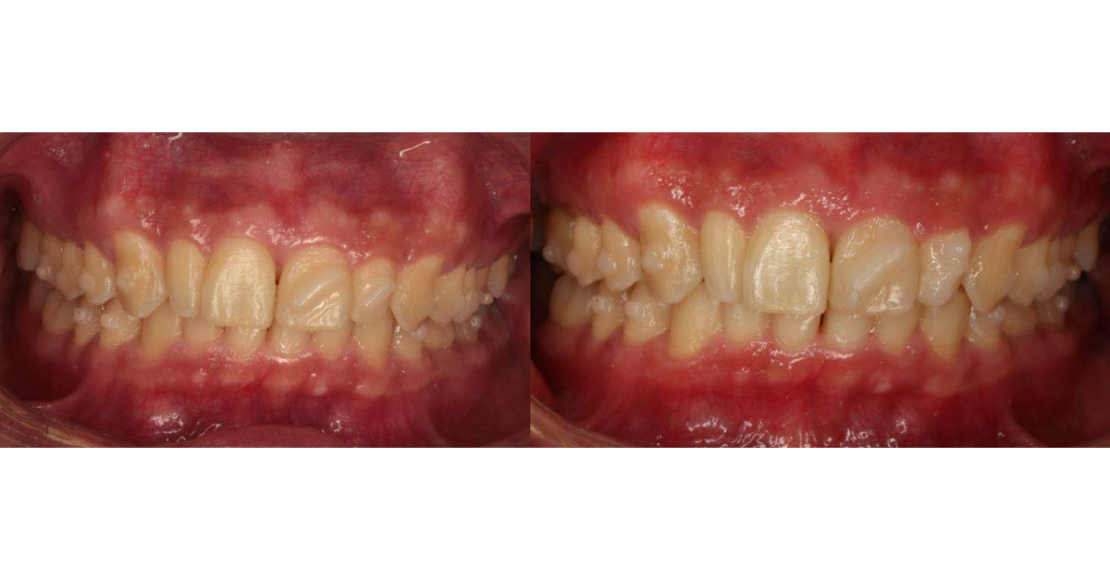 Les racines de 21 et 22 étaient en contact, mais une mobilisation mésio-distale des incisives n’est pas un mouvement prédictible en traitement par aligneurs.